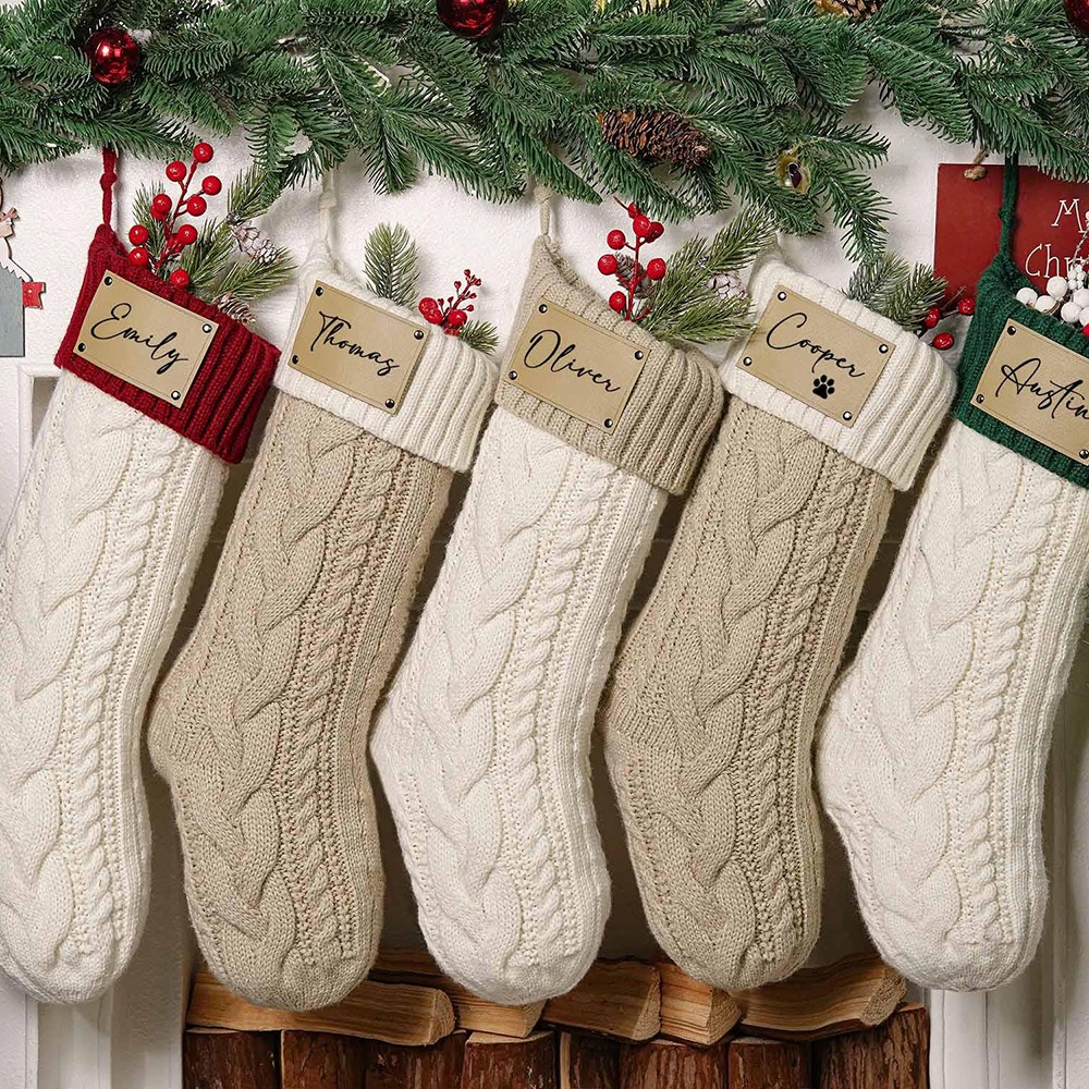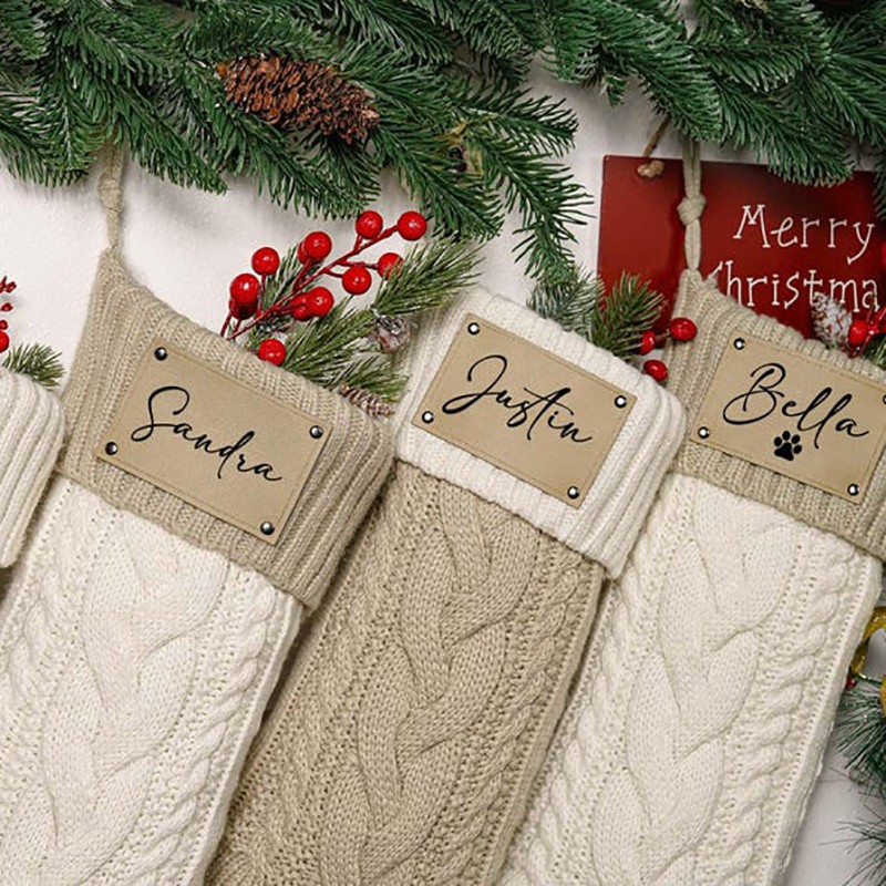 Everyone can enjoy personalized Xmas stockings. Personalized with names or any text to capture the warmth of Christmas.Crafted with care, our twisted knit stockings are soft, comfortable, and thick. The premium leather patches boast elegant stitching. These stockings stretch to accommodate more gifts and regain their fluffy look with a bit of air exposure.