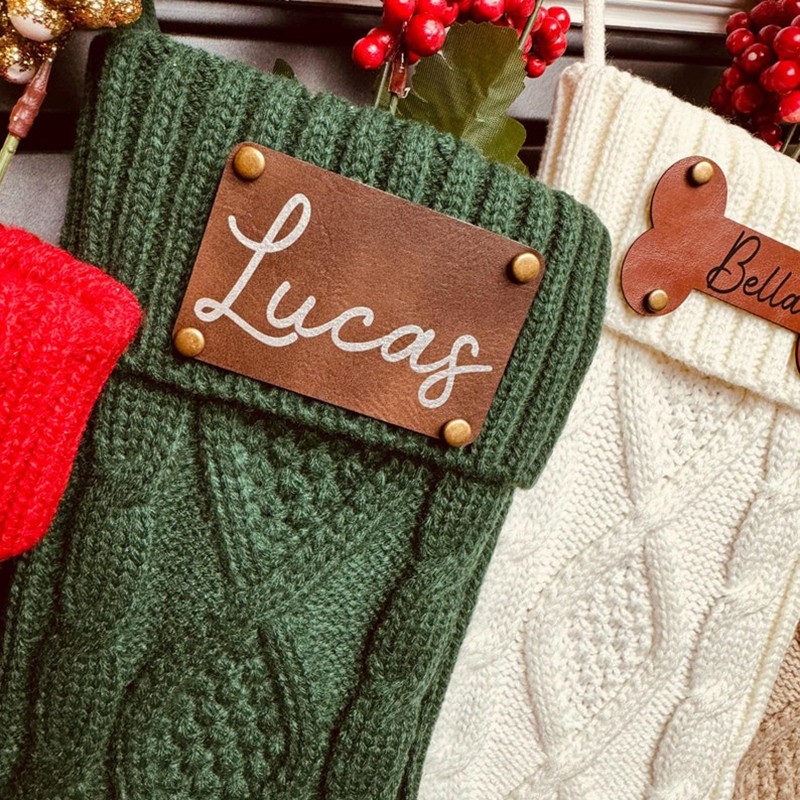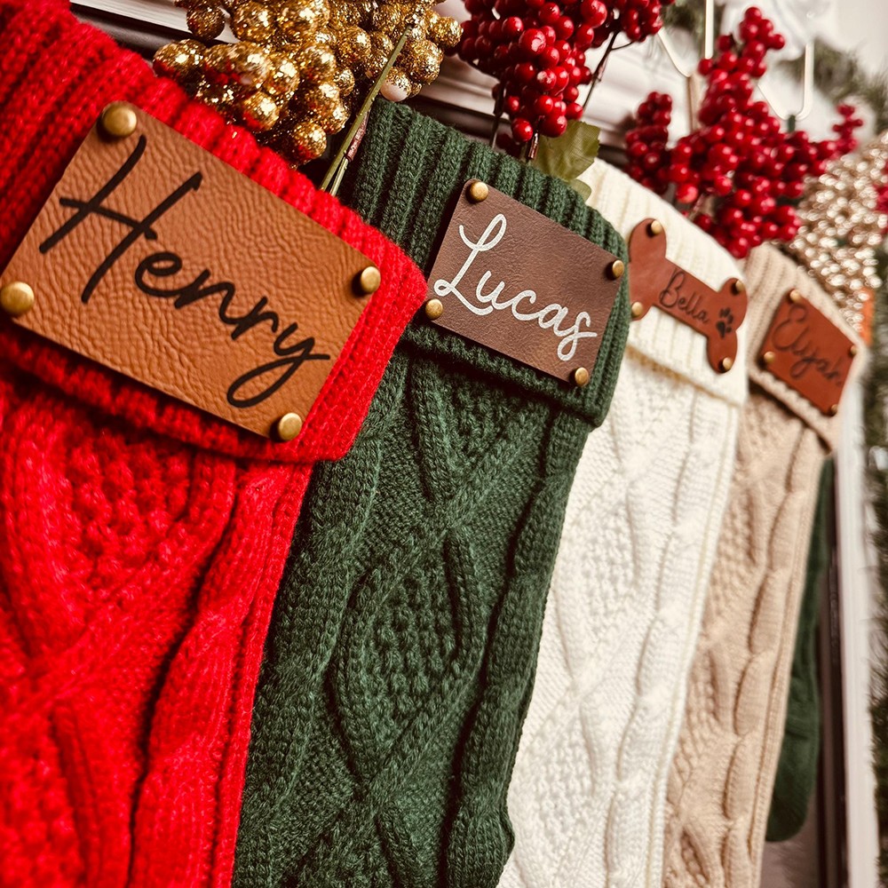 Everyone can enjoy personalized Xmas stockings. Personalized with names or any text to capture the warmth of Christmas.Crafted with care, our twisted knit stockings are soft, comfortable, and thick. The premium leather patches boast elegant stitching. These stockings stretch to accommodate more gifts and regain their fluffy look with a bit of air exposure.