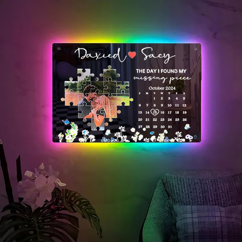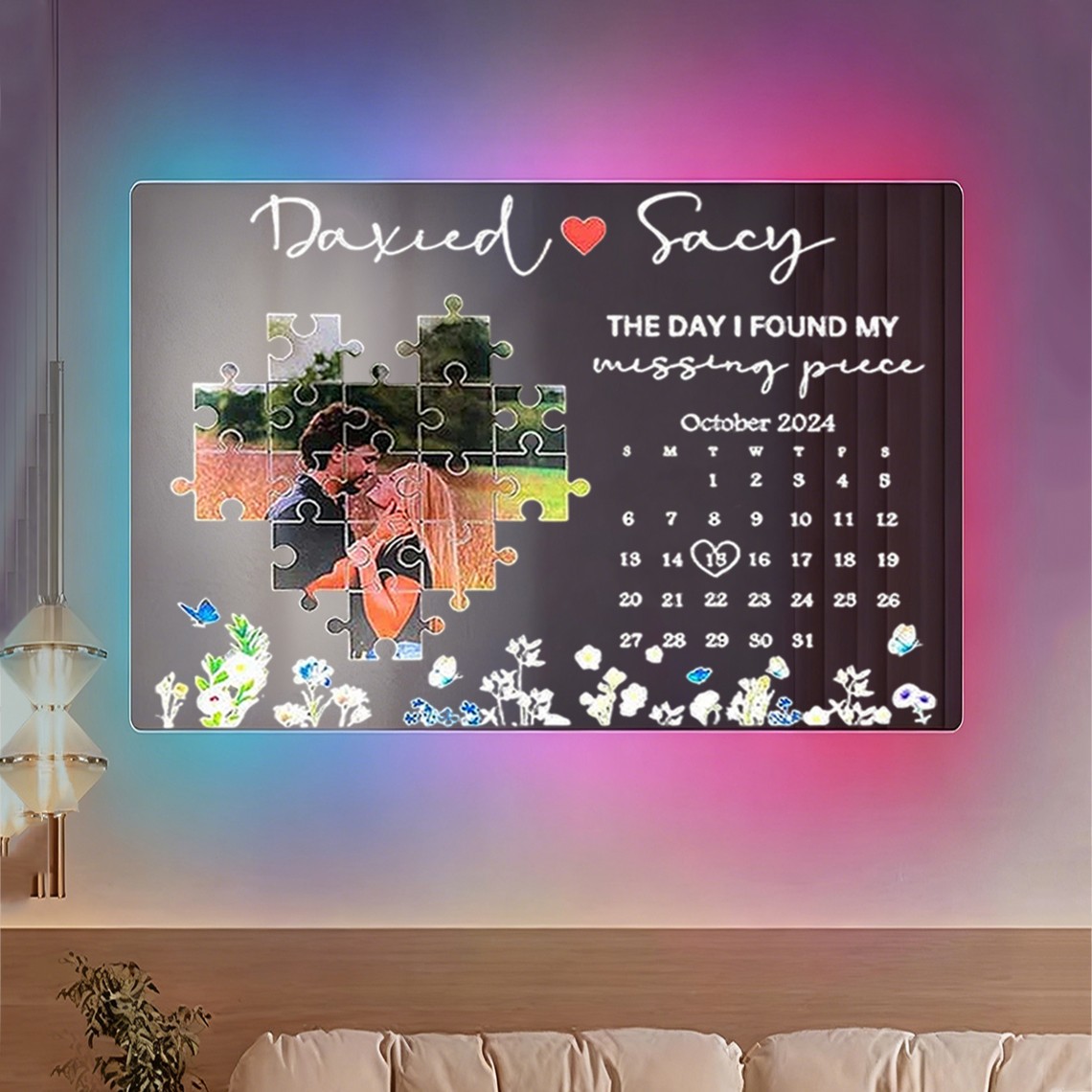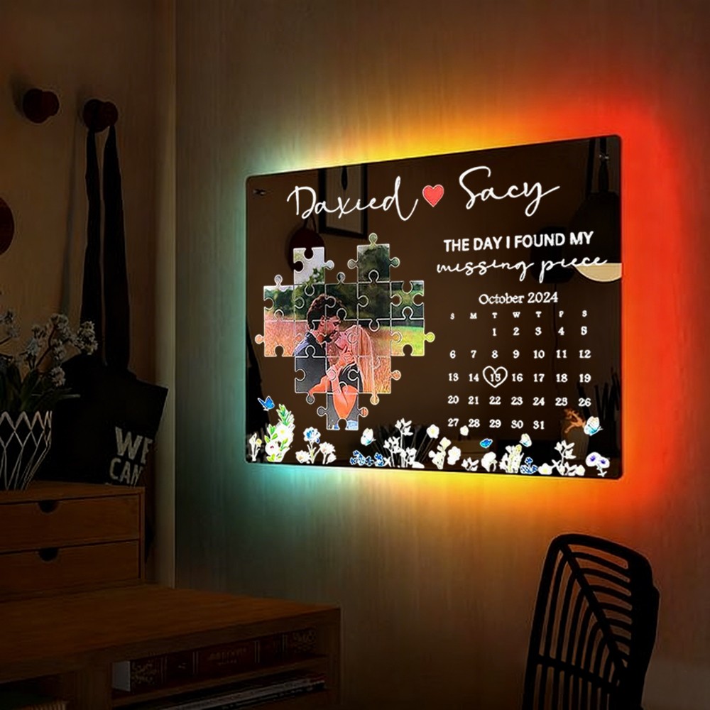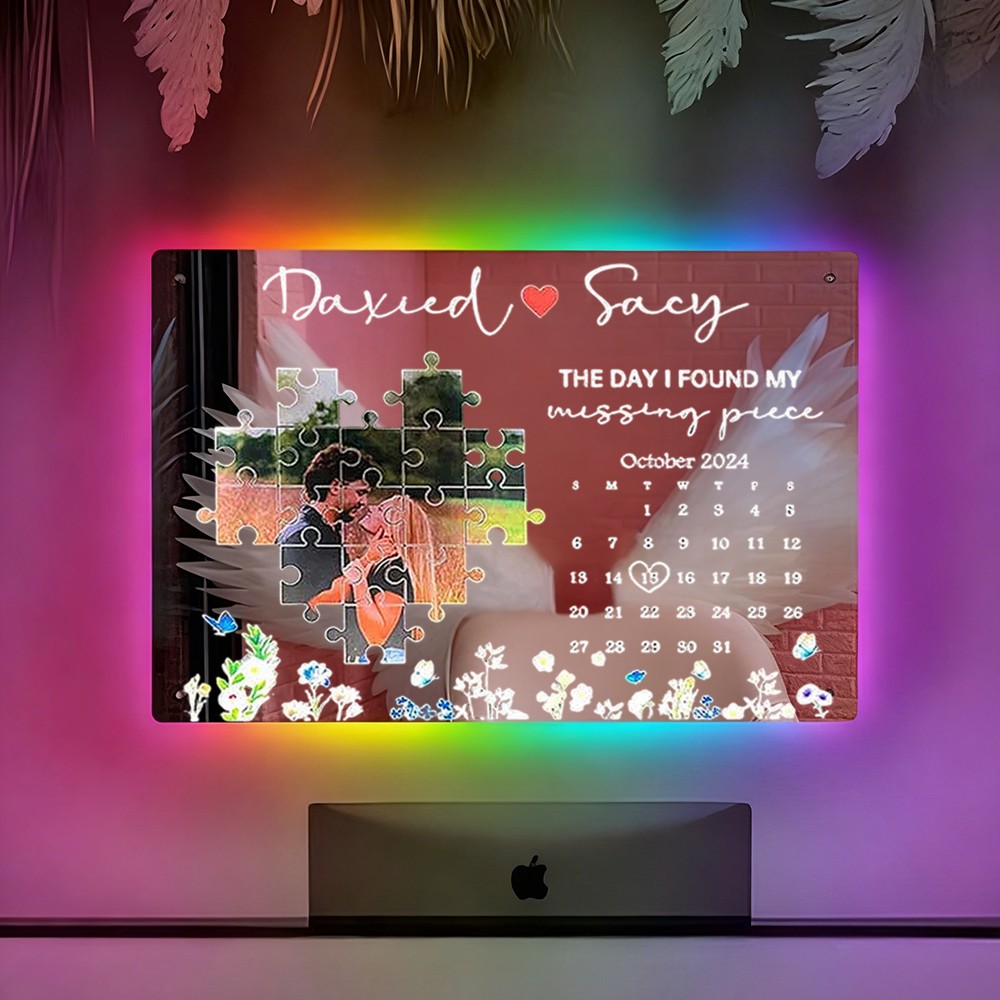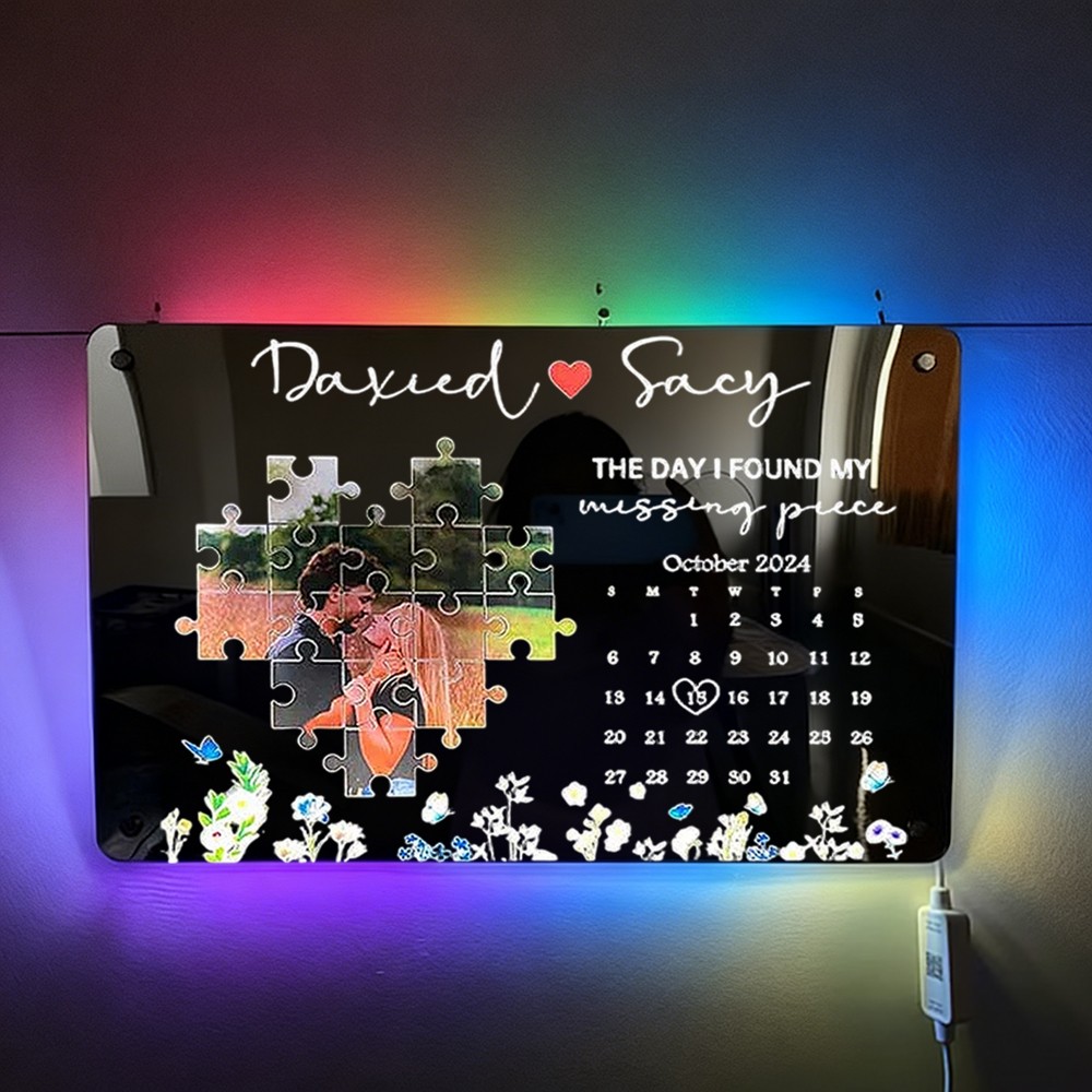 The Day I Found My Missing Piece Personalized Photo Mirror Lamp for Couples