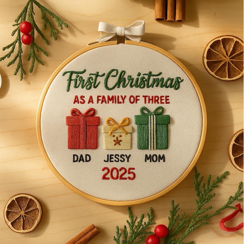 Personalized Embroidery Family Christmas Ornament Gift for Families 2025