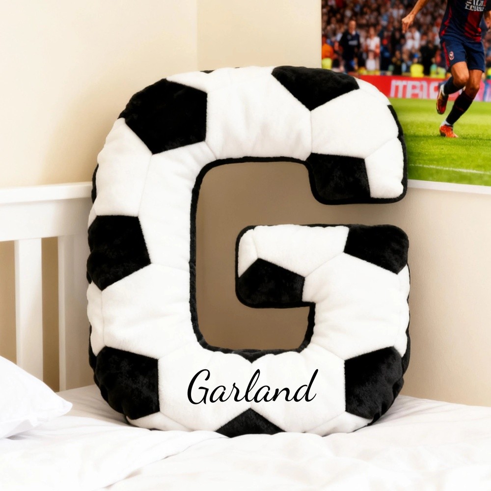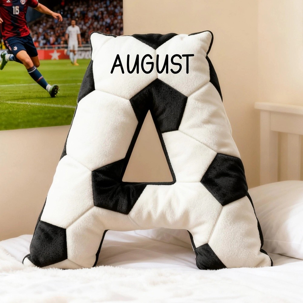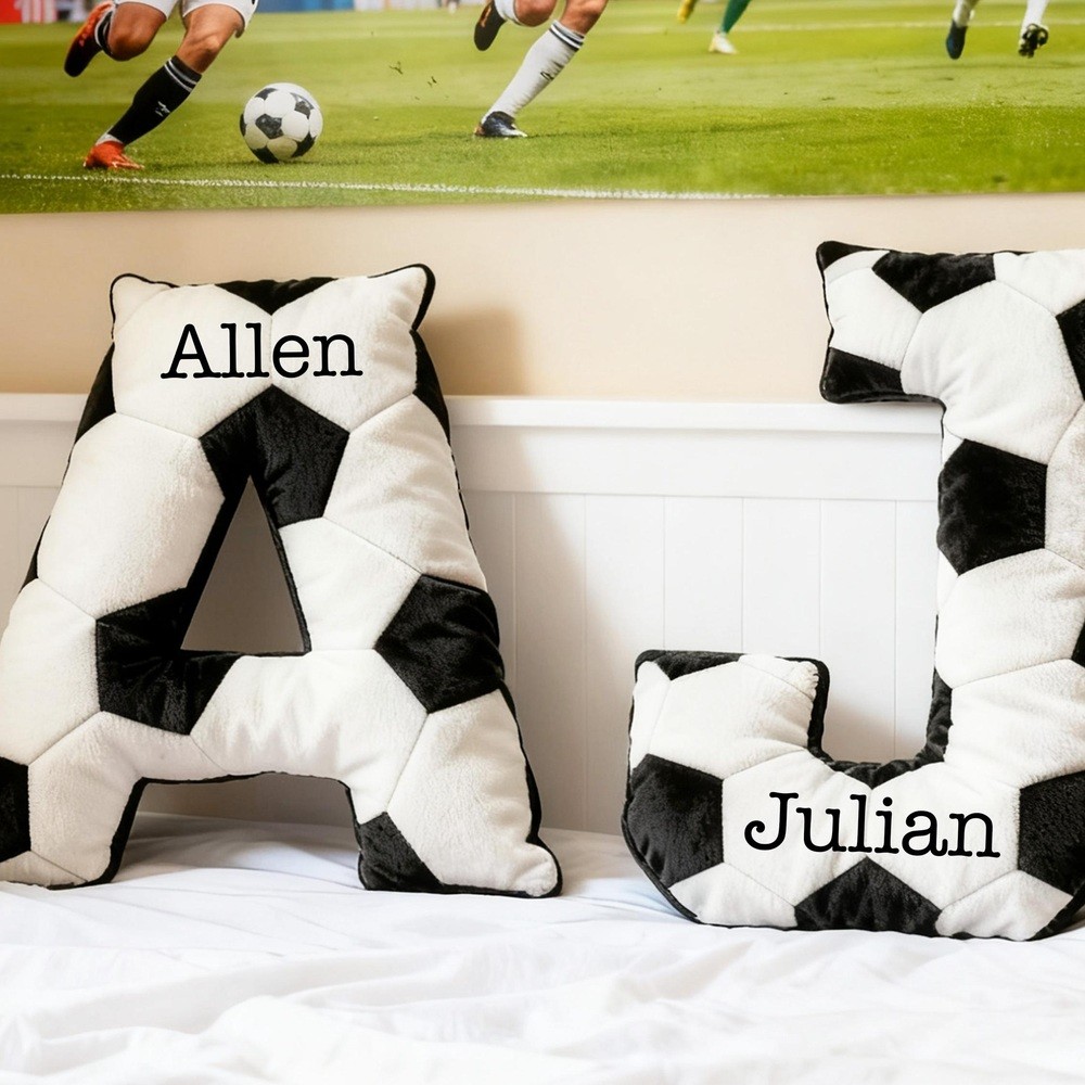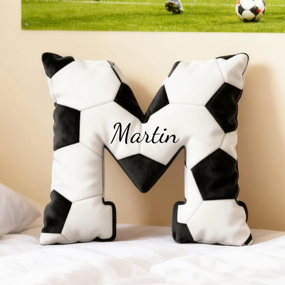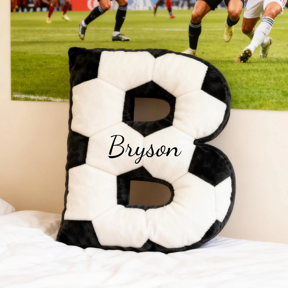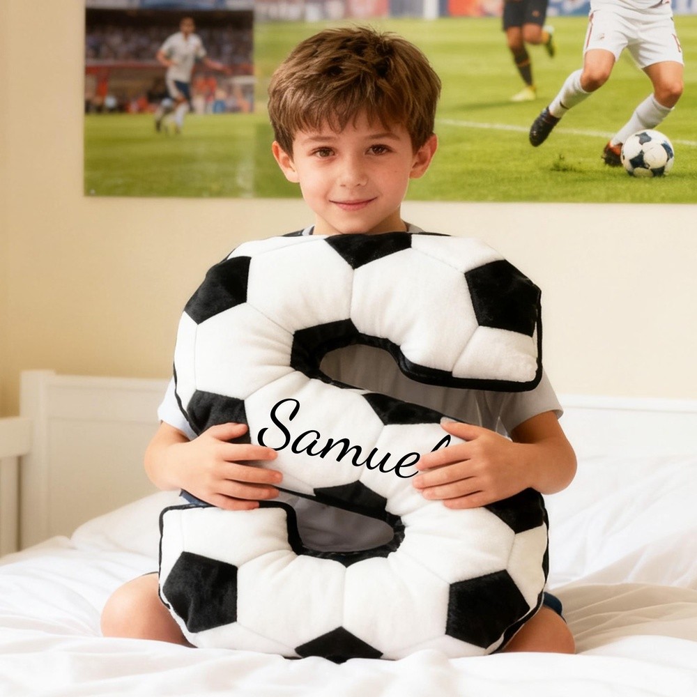 Personalised Soccer Theme Initial Pillow with Kids Name Sports Fans Xmas Gift